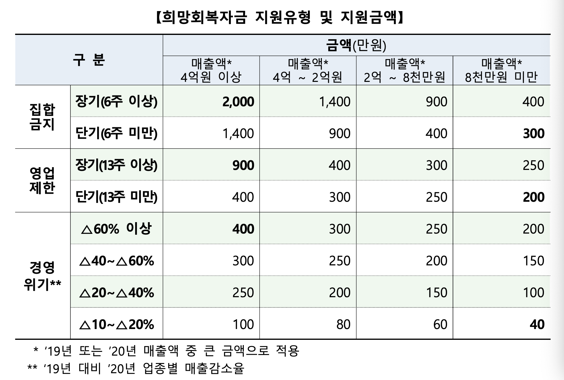 집합금지, 영업제한, 경영위기 그룹으로 분류 매출액기준으로 지원금이 산정됩니다.