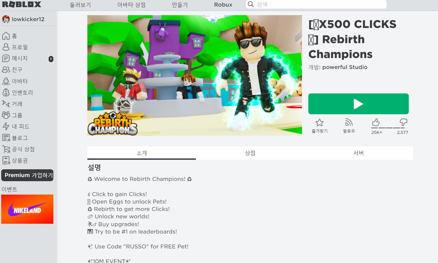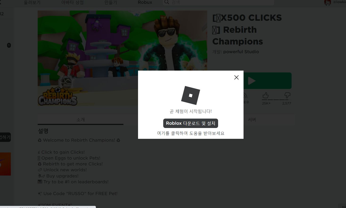 우선 PC버전 런처를 다운로드 하기위해서는 로블록스 회원가입을 하시고 난 뒤 로블록스 홈페이지에서 게임을 하나 골라주셔야 합니다.