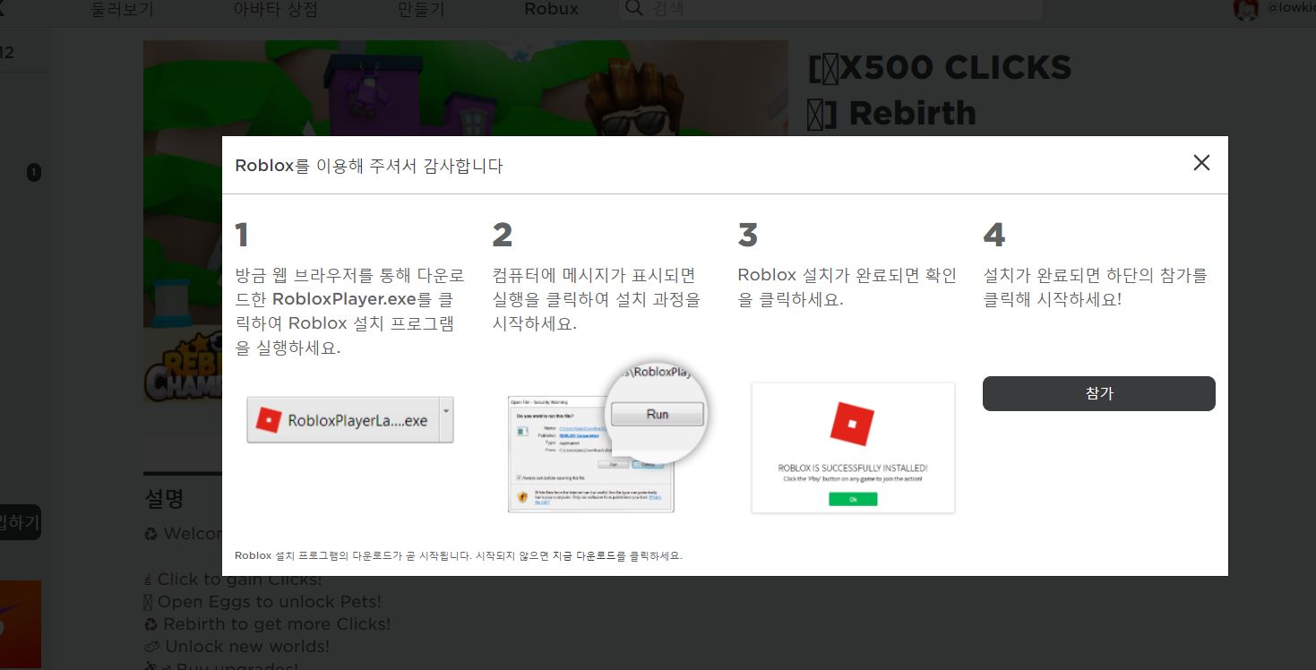 런처파일을 클릭해서 실행하시면 로블록스 설치가 진행됩니다.