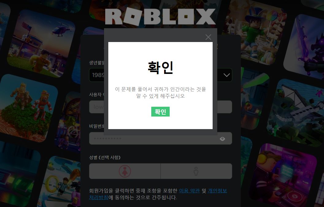 회원가입을 하시면 로봇이 아님을 증명하기 위한 퀴즈가 나옵니다. 이를 풀어주시면 게임 페이지로 이동합니다.
