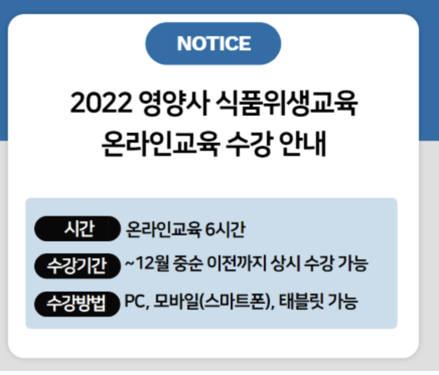 2022 영양사 식품위생교육 온라인 교육 수강안내