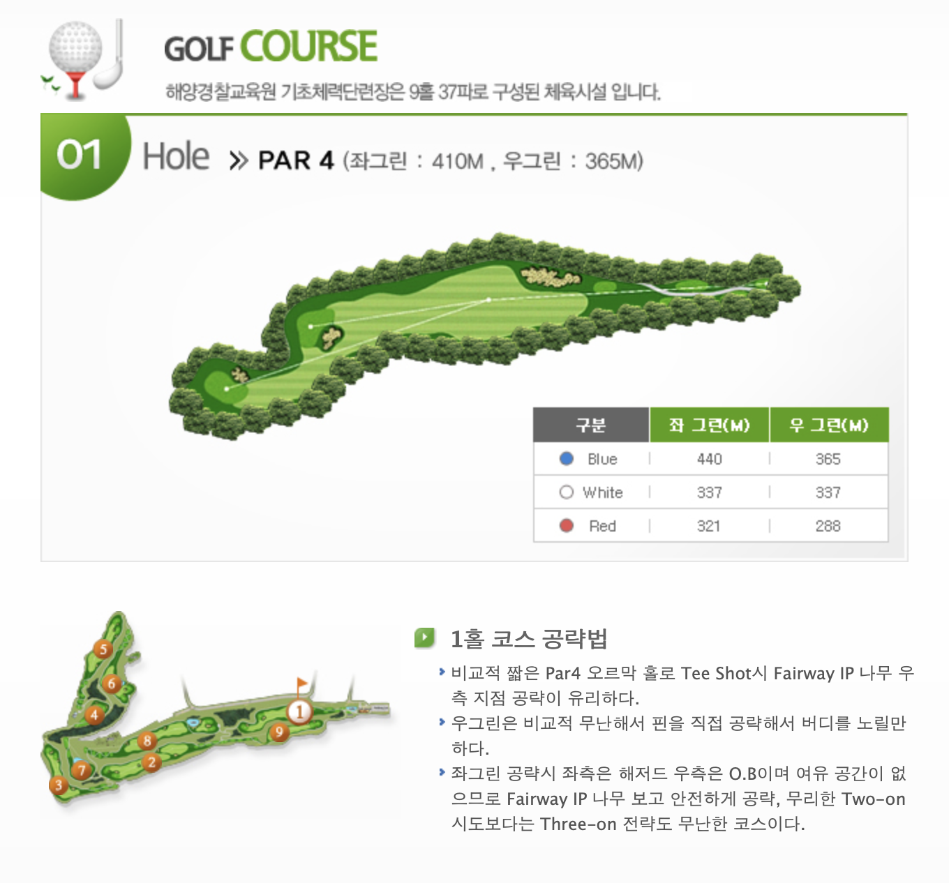 여수 경찰교육원 기초체력단련장 9홀 코스 안내 및 공략법