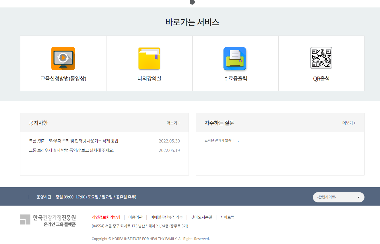 한국건강가정진흥원 온라인 교육 플랫폼