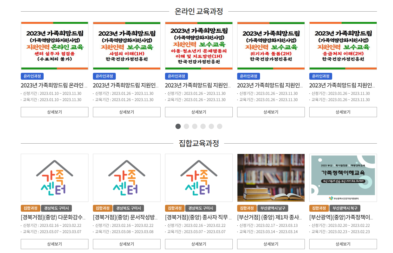 | 2023년 가족희망드림 (가족역량강화지원사업) | 지원인력 온라인교육 | 센터 실무자 점검용 |