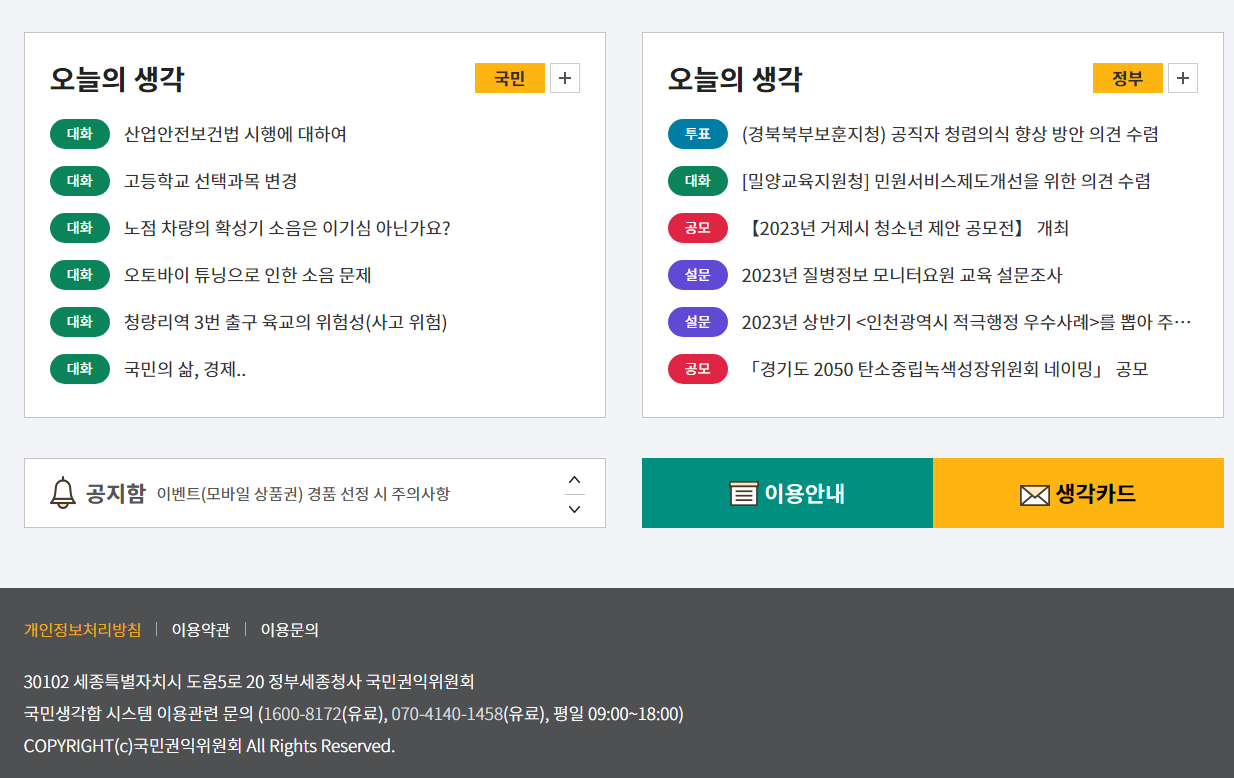 국민권익위원회가 운영하는 국민생각함 홈페이지 입니다.