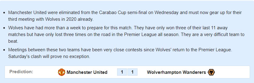 부상자로 신음하는맨유가 울버햄튼을 올드트래포드로 불러들여서 어떤 결과를 만들지 기대되는 경기인데 무승부 혹은 울버햄튼의 신승이 기대됩니다.