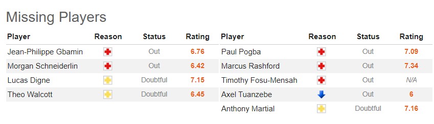 에버튼 맨유 결장명단