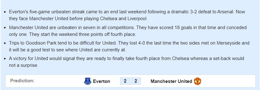 에버튼의 5경기 연속 무패 기록은 아스날전 3-2 패배로 종료되었습니다. 하지만 맨유의 7경기 연속 무패 기록은 현재 진행형 입니다.