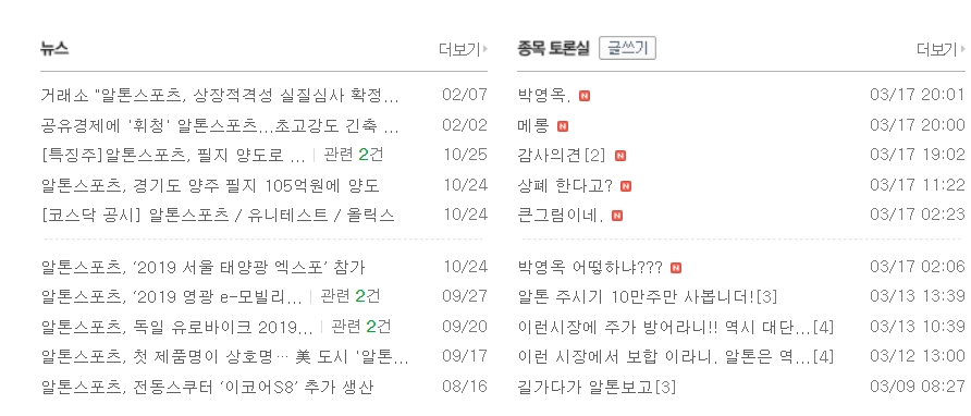 알톤스포츠 주식 종목토론실에 가면 등장하는 박영옥이라는 이름.