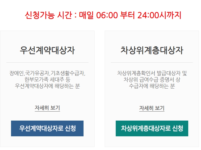계약대상자로서 우선계약대상자, 차상위계층에 모두 해당되시는