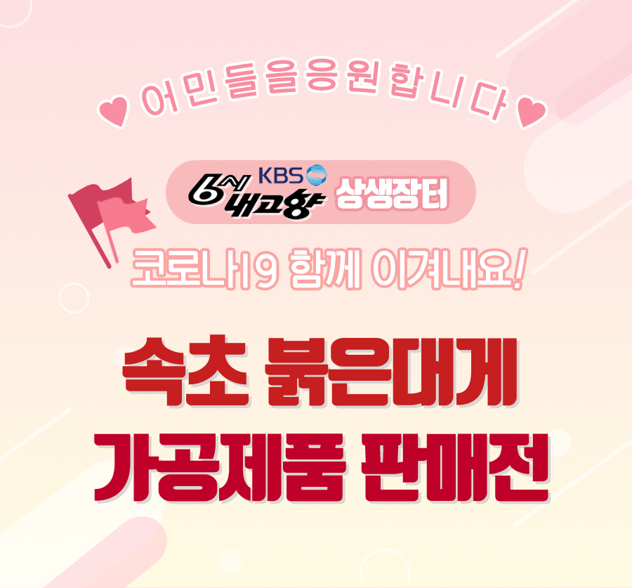 KBS 1tv 6시 내고향 상생장터 코너에서는 코로나 19의 여파로 어려운 상황엥 처한 농가 및 소상공인들에게 소비자와 직거래를 할 수 있는 판로를 마련해 드리는 코너입니다. 농가 및 소상공인분들�