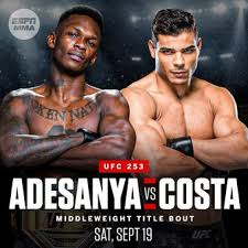 UFC253 더블 타이틀전에 출전하는 미들급 챔피언 아데산야의 파이트머니 정보 입니다.