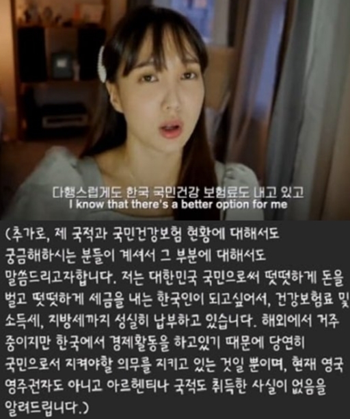“제 국적과 국민건강보험 현황에 대해서도 궁금해하시는 분들이 계셔서 그 부분에 대해서도 말씀드리고자 한다”
