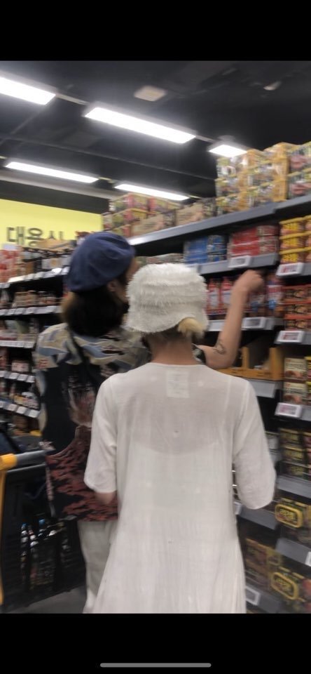 채영으로 추정되는 여성과 함께 장을 보고 있는 남성
